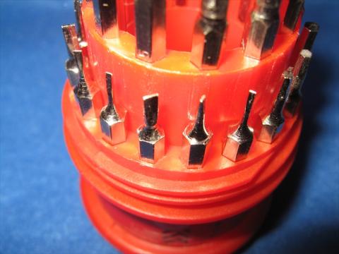 ビットは上部にかぶせるカバーの内側の螺旋部分で抜けないようになっています