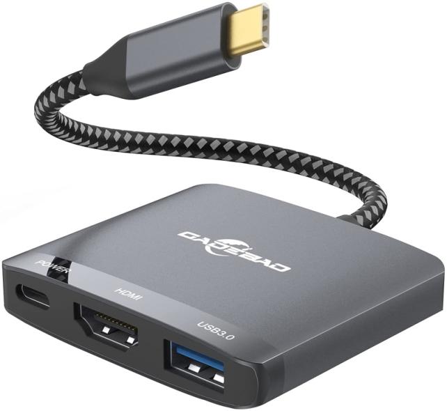 USB Type-CからHDMI出力を得るアダプターは既に持っていたのですが、今回購入したこのアダプタは、HDMI出力以外に、USB Type-C PD IN端子及び、USB 3.0 Gen1 Type-A端子が付いています。