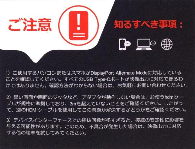 また、USB Type-C端子からHDMI出力を得ている際には、現状では、PC付属のACアダプター以外には、電源をPCに供給する方法がありません。