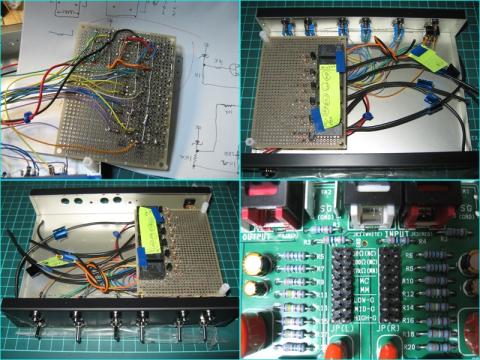 MM/MC切替 / 負荷抵抗切替 / GAIN切替 は基板上のジャンパーピンで設定するのがデフォルトですが、私は基板をケースに入れるのでジャンパーピン設定は無理と考え、リレーで切り替えることにしました → 難関難問の始まり...