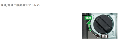 後継のD13VKが1番が低速、2番が高速となっていますので、説明書は無いですが、同様だと思います。基本的に建築屋さんに使われる物ですので、後継も仕様は一緒の物が多いですね・・・