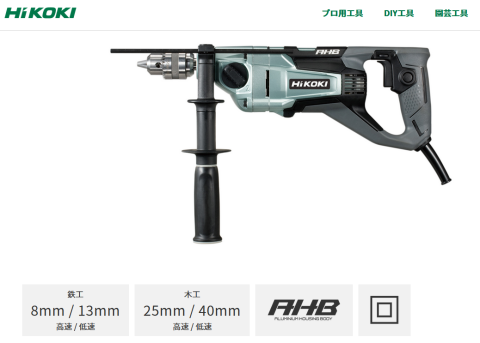 ちなみにD13VKは、モーターが改善されて、穴開け力が1.4倍になっているようです。