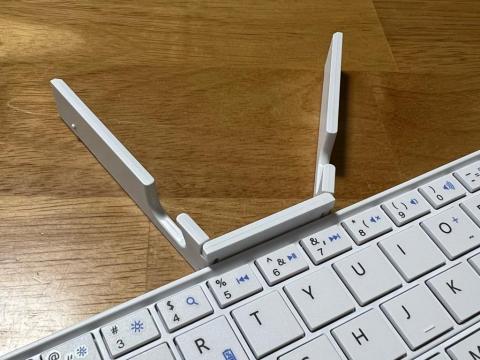 キーボードにはスマホを立てかけられるスタンドギミック付きです