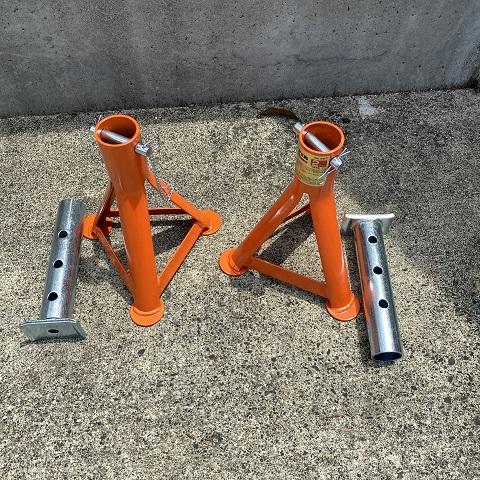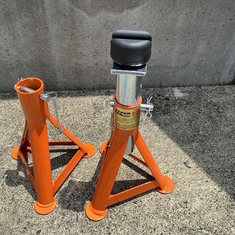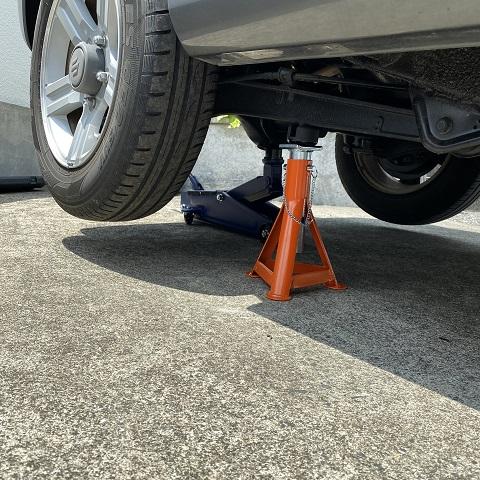 油圧ジャッキで車体を上げたら、下がってこないようにスタンドも購入しました。