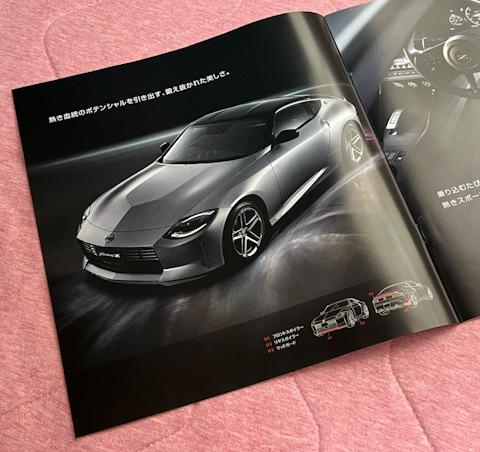 何年か前にもらったZのカタログは、普通の冊子でしたが、14年ぶりのフルモデルチェンジということで、GT-Rとか特別なクルマのカタログと同じようにハードカバーの絵本のような作りのカタログでした。