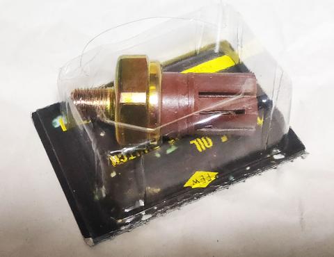 車用のオイルプレッシャースイッチ。そのままだと通電するがエンジンオイルが回った時の油圧によってスイッチが切り替わり通電を止める。これによってインパネのオイル警告灯を制御する。