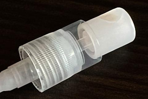 ポンプ部は半透明・乳白色の樹脂製なので、老眼の私には形状や噴射口の向きが掴みにくいですが、清潔感があってスリムなガラス容器によく合うと思います。