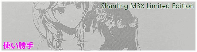 萌え系以外では、オーディオ回路に使われているコンデンサが、AVX社製のタンタルコンデンサからPanasonic製の高分子コンデンサになって、ShanlingとTANCHJIM、水月雨(Moondrop)の3社でサウンドチューニングを行い、ディティールの正確さとヴォーカル表現に重きを置いたものになったとか(こっちは「素の」M3Xに関しては、周りに騒音がある店頭で、よく自分の識っている曲ではなく、もともとDAPに入っていたサンプル曲を試聴しただけなので、自分では実感しているわけではないが)。