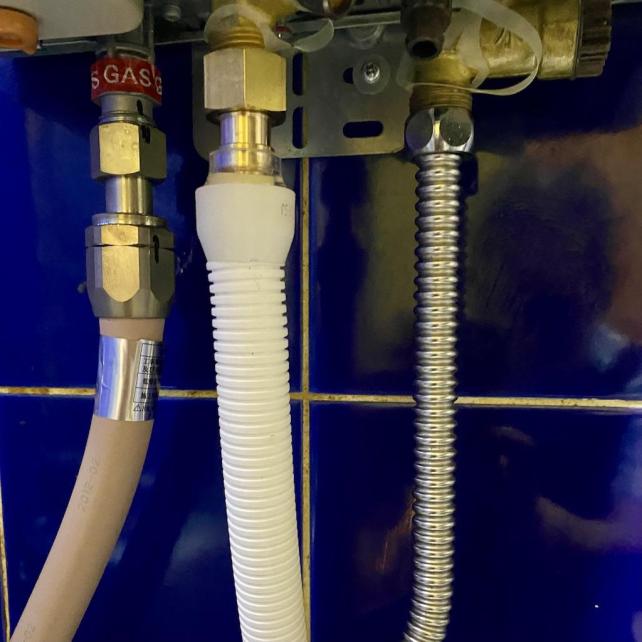 湯沸かし器の真下に伸ばし、あとは 適当に曲げながら、配置を考えて、