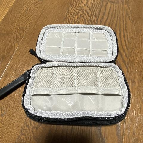 まだまだ入る収納力。充電器やケーブル類を収める物は準備すると思うけど、借用したメモリーや、使うソフトに必要なUSBキーなどの小さい大切な物を持ち歩くには専用収納ケースも大事ですね。重宝しています。