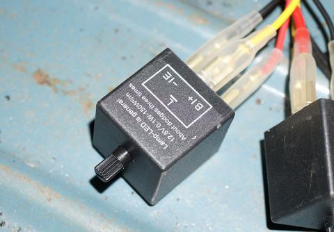 一般的にはLED化した際のハイフラキャンセルの為に使うもの。電球前提のウインカーリレーは球切れした際の警告としてハイフラをするようになっているが、消費電力の低いLED球をつけると球切れと誤認してハイフラになってしまう。