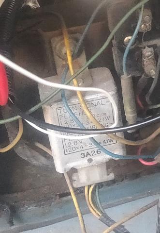 そして更に面倒なのが、テール側はワンテールでブレーキランプとウインカーを共用するため配線が一体化している、更にもともとハザード機能がなかったところに割り込みで追加されているので手元の配線図にはハザードに関する配線が掲載されていないし、ウインカーフラッシャー(リレー)の仕様も変わっている。