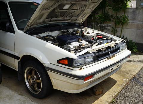 26年間放っておいた車…日産ラングレーも色々ダメになっていたが雨に当たっていた箇所が限られたおかげでわりと軽整備でエンジンはかかった。しかしオイルは回らねえわ冷却水は垂れ流すわ。