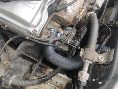 エンジンは運よく軽整備程度でかかったがアッパーホースがもう目に見えるぱっくり割れ具合でそこから水ダバダバ。幸いエンジンを通った水の出口側にあたるので、常時ラジエーター側から水道水を補給してやればとりあえずエンジンを回す事ができたがとりあえずにもほどがある。