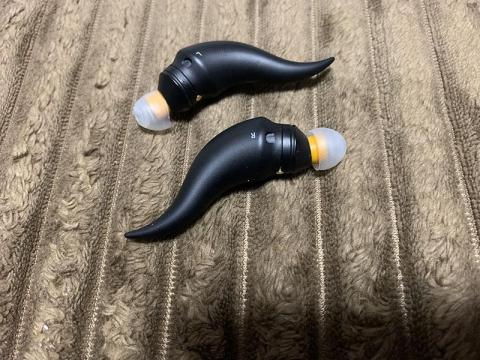 この製品は今時の流行であるTWS(完全ワイヤレスイヤホン)なのですが、一般的なTWSとは異なりイヤフォン本体側にタッチセンサー等で操作する機構がありません。説明書によるとSIMピンでリセットボタンを押すことで音量調整だけはできるようですが、再生/停止程度はあっても良かったのではないかという気はします。そもそも操作する度にSIMピンを取り出すというのもなかなか面倒ですし…。