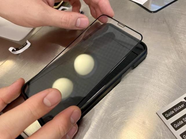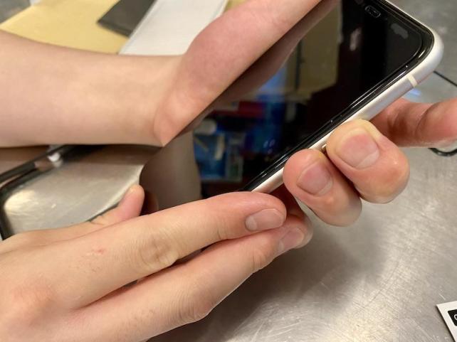 ガラスフィルムの接触面を覆う透明カバーを剥がしたら すぐに画面へGo