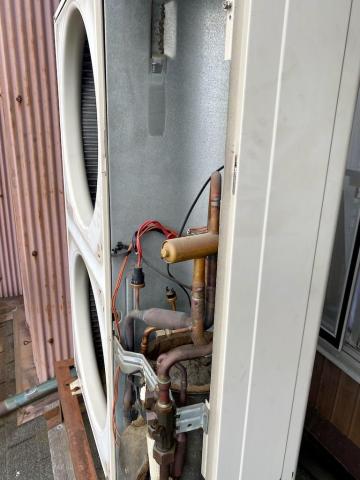 二階の屋根に設置している業務用エアコン用大型室外機 その重さは およそ120キロ。