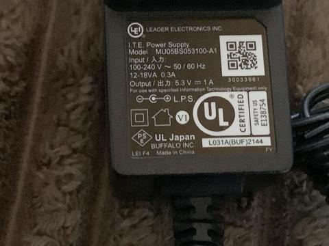 備忘録を兼ねて、ACアダプターの仕様も掲載しておきます。