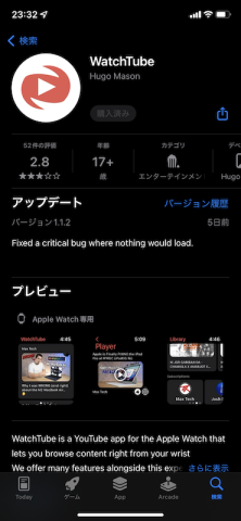 無料のApple Watch用アプリ WatchTubeなるものをインストールしてみました