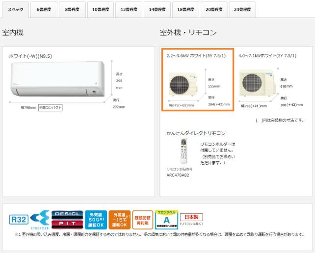 ””室外機(突起含む):高さ555mm×幅740mm×奥行326mm””