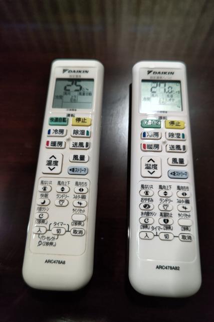 2014年製、2022年製リモコンとの大きな違いは『0.5℃単位で温度が変更出来るようになった』こと、ランドリーボタンの下に『高温防止ボタンの新設』、ボタン名の変更「快眠→おやすみ」の3点となっただけ・・・・・かとおもってた時期がありました。