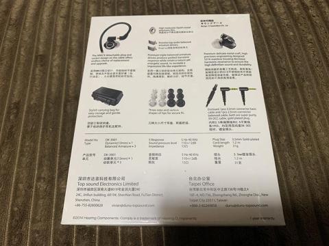 台湾DUNU TOPSOUND(TopSound Electronics社の自社オーディオブランド。TopSound Electronics自身は元々OEM/ODM主体のメーカーだった)製の1DD+3BAハイブリッドドライバー採用モデルとなるDK-3001です。発売時には5万円台の価格を付けられていた、当時のDUNUのフラッグシップモデルでした。