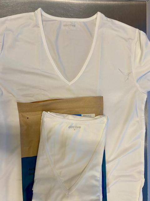 封筒状の袋に3枚のシャツが 個包装無しで封入されております。