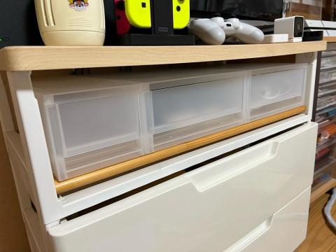 (↑)の引き出しをテレビラック下に2つ取り付けてみたのですが
