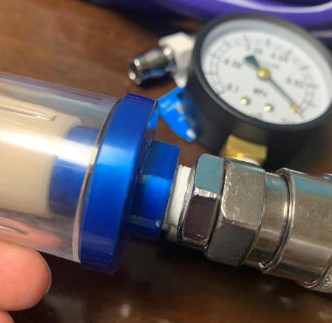 ガス漏れの原因は簡単です、1/4 アダプター、オス、メス共に液体ガスケットでシーリングしてありますが、そこから漏れます