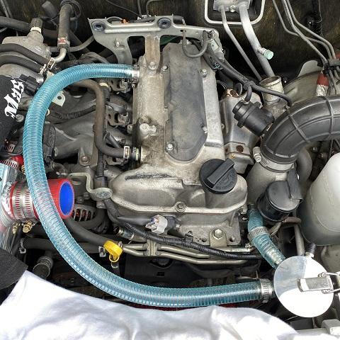 内径がホースの外形とほぼ一緒なので一苦労しましたがインタークーラーまで付けて完了です。