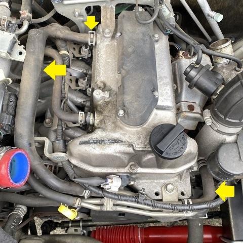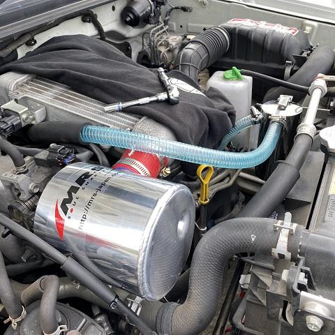 まずインタークーラーを取り外し、交換するホースの撤去をしないと始まりません。