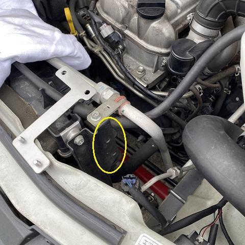 場所はフロントのラジエターが固定されているステーに穴があるのでそれを流用。