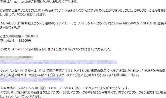 そして勝手にキャンセルされ、正しい価格のページに誘導され、納得したならそこで再度カートに入れて購入してくれみたいな感じでした。
