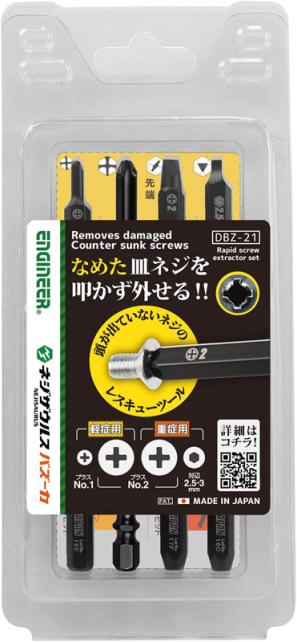 このツールは、軽傷用ツール2種と重傷用ツール、なめた六角ねじ用の4本セットのツールになります。