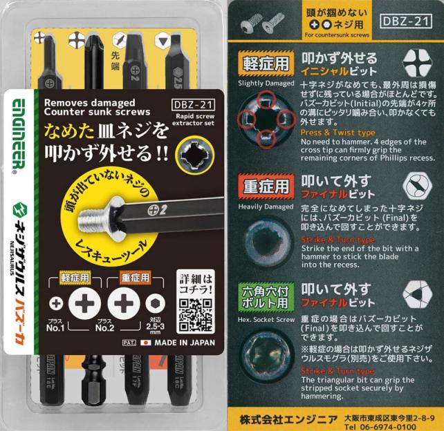 軽症用ビットは潰れたネジを叩かずに外せます。