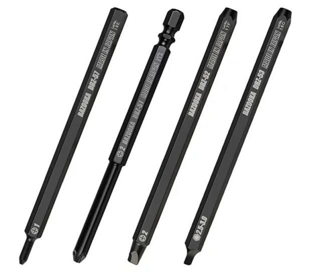 潰れたプラスネジや六角穴付きボルトを外せるドライバービットの4本セットです。