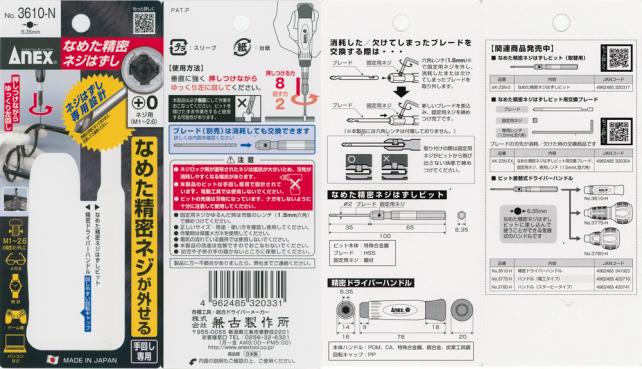 そこで、色々探してみたのですが、潰れたネジ山のネジが外せる精密用(M1~M2.6が、ANEXから販売されていました。