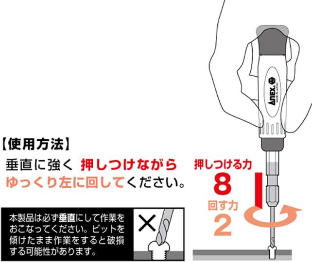 ネジに対して、垂直にネジ穴に押し込み、押さえる力 8 / 左側に廻す力 2で開けるそうです。