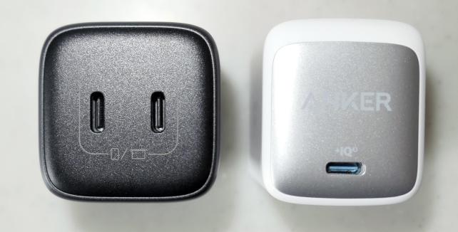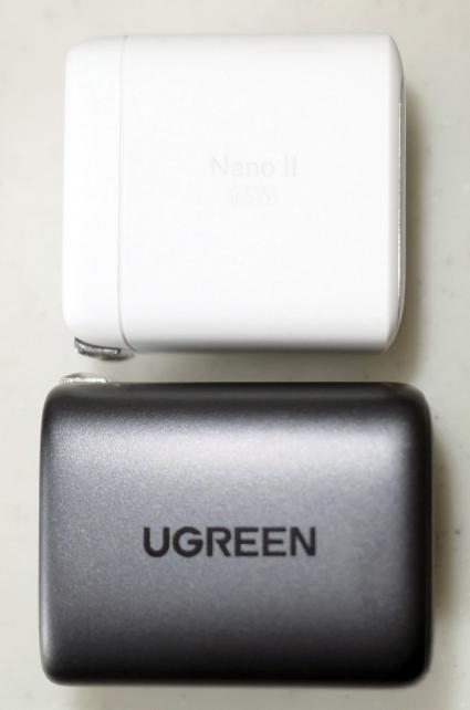本体は、ANKER製 Nano2 65Wと比較して、奥行きが若干長く、端子面の大きさはあまり変わりません。