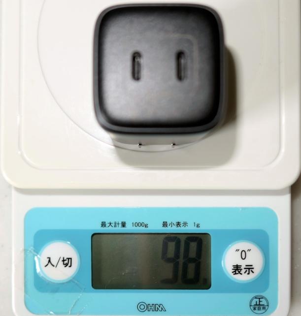 大きさは、3.99 x 3.99 x 4.9 cmで、重量は実測値で98gでした。