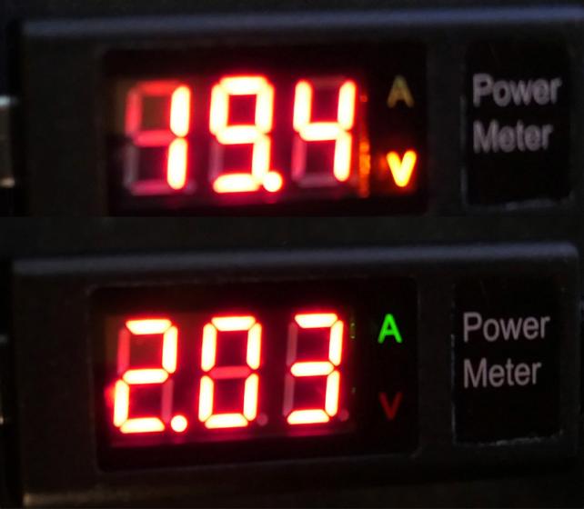 65W給電に対応したノートPCを接続してみると、19.4V / 2.05A (39.8W)で電源が供給されました。