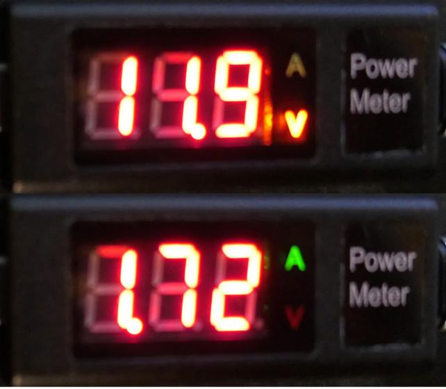 この状態から、2ポート目にスマートフォンを接続してみると、ノートPC側の出力は、11.9V / 1.72A (20.5W)になり、ノートPCもスマートフォンも同時に充電されました。