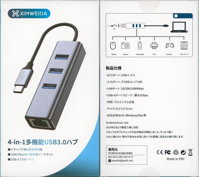 このアダプタには、USB 3.0(5Gbps) Type-A端子が3ポート付いていますので、このアダプターで使用したUSB Type-Cの穴埋めとしては充分な仕様だと思います。
