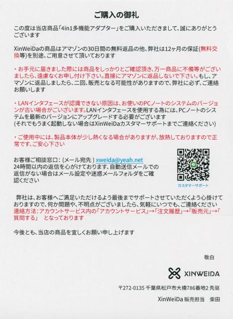 出先でトラブった際に、いちいち取扱説明書やサポート案内のドキュメントは持ち歩かないので、問い合わせ先が判るだけでも安心感が増します。
