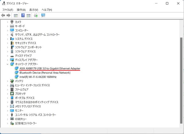 デバイスマネージャーにもネットワークアダプター(デバイスマネージャー画面の赤線)として認識されました。