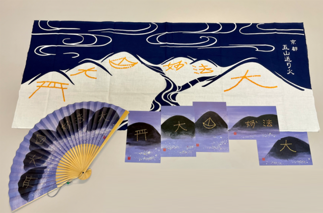 五山送り火をモチーフにしたオリジナルの扇子・絵はがき及び手ぬぐいを制作・販売しています。
