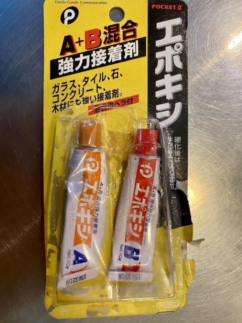 100均で買い求めることができる 2液式エポキシボンド オススメです。
