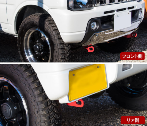 ジムニーには牽引フックがありません。おもちゃ的な物はあるのだけど、