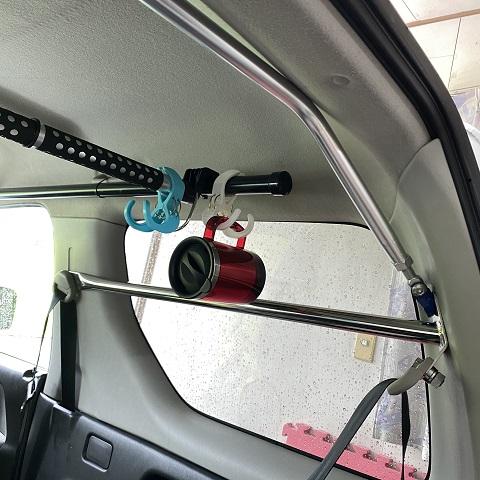 今回は1人で取り付けましたが、バーが擦れたりすると傷が付くので2名で行った方が良いと思いました。私はウエスを巻いて必要な時にとって固定しました。何せリアのピラーバーと補強バーを繋げた状態で固定する作業は腕が3本くらい必要で、フロント側が暴れるので内装を擦りまくります。