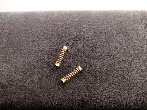 とどめはEnterキーの荷重変更です。外観上のアクセントと合わせて、ここだけタッチを変えました。ノーマルのキーはスライダーでラバーシートを直接押すだけですが、ストロークの押しはじめに少しだけ「溜め」が欲しい。そう思い、Cherry MX用の金メッキスプリング(60g)を装着しました。スプリング追加によって打鍵後の反発も増えますが、タイプ圧が強めの私にはちょうど良く、何よりも「特別なキーを押した」実感が得られます。